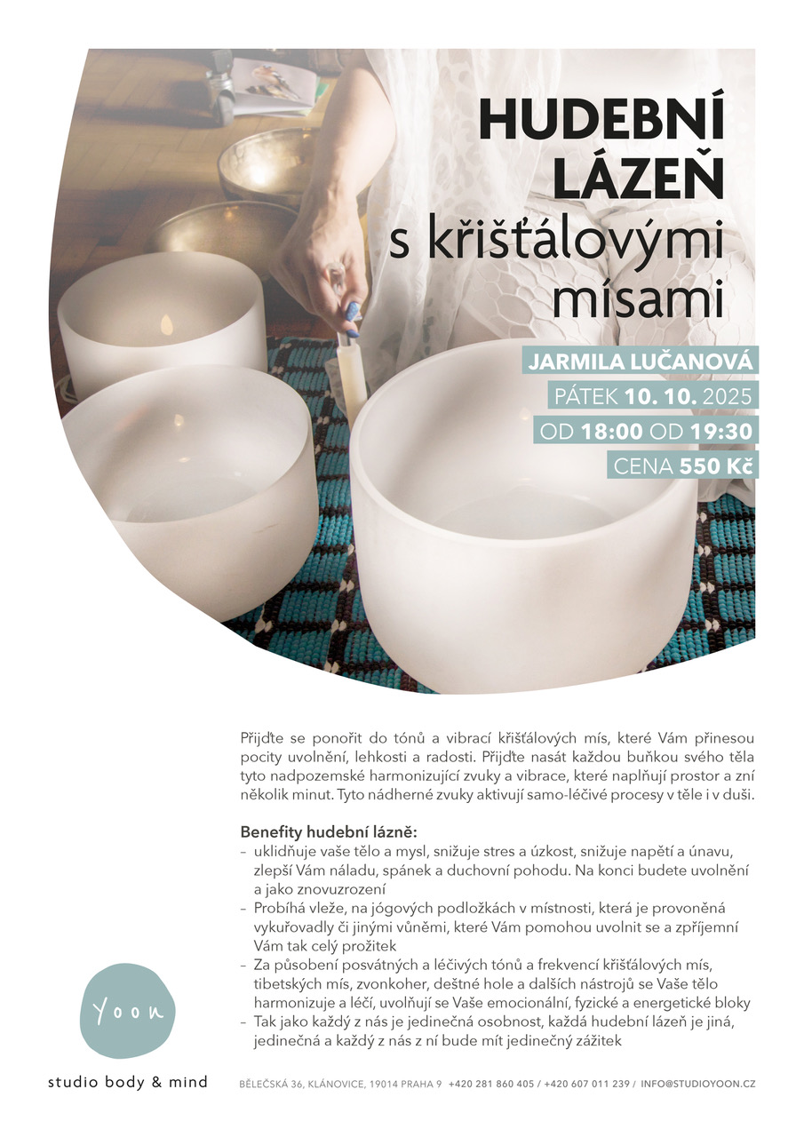 Přijďte se ponořit do tónů a vibrací křišťálových mís, které Vám přinesou uvolnění, lehkost a radostí.